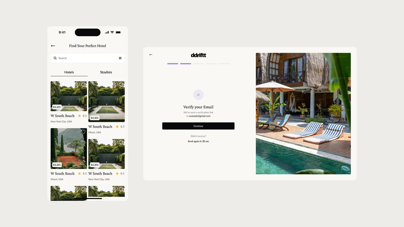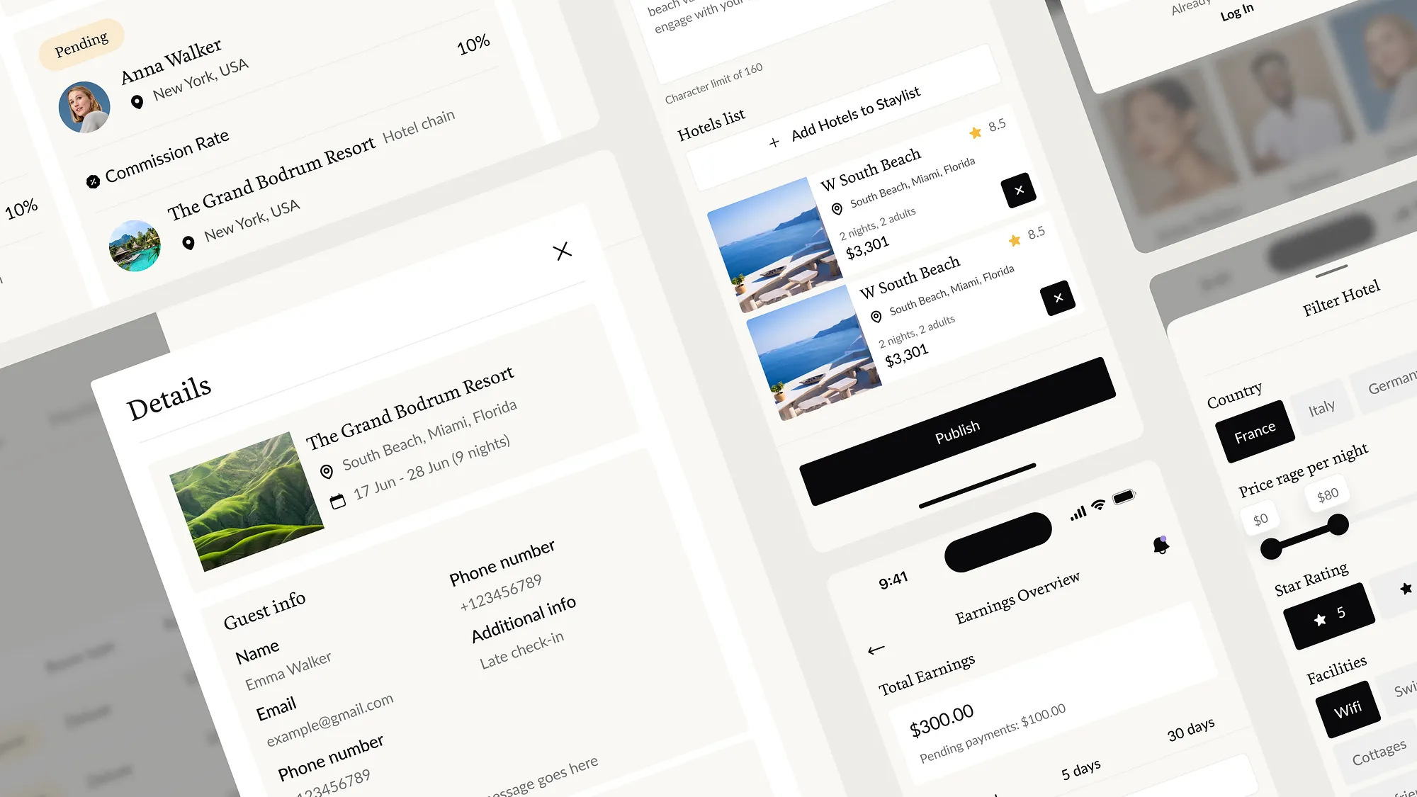 Different user types require tailored experiences. Since influencers and travelers primarily use mobile devices, we design a sleek, responsive mobile interface optimized for discovery and booking. On the other hand, hoteliers need a more analytical approach, so we create a desktop dashboard that simplifies management and reporting. The goal is to ensure convenience for all users, no matter the device.