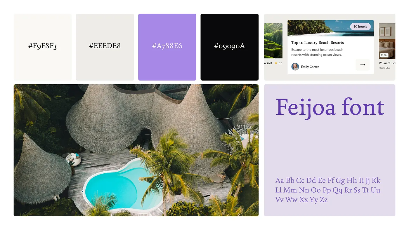 Typography is key to accessibility and structure. Using a four-point font size scale ensures readability and a clear flow of information across all devices. A mix of serif and sans-serif fonts combines luxury with modernity, giving the platform both character and precision.