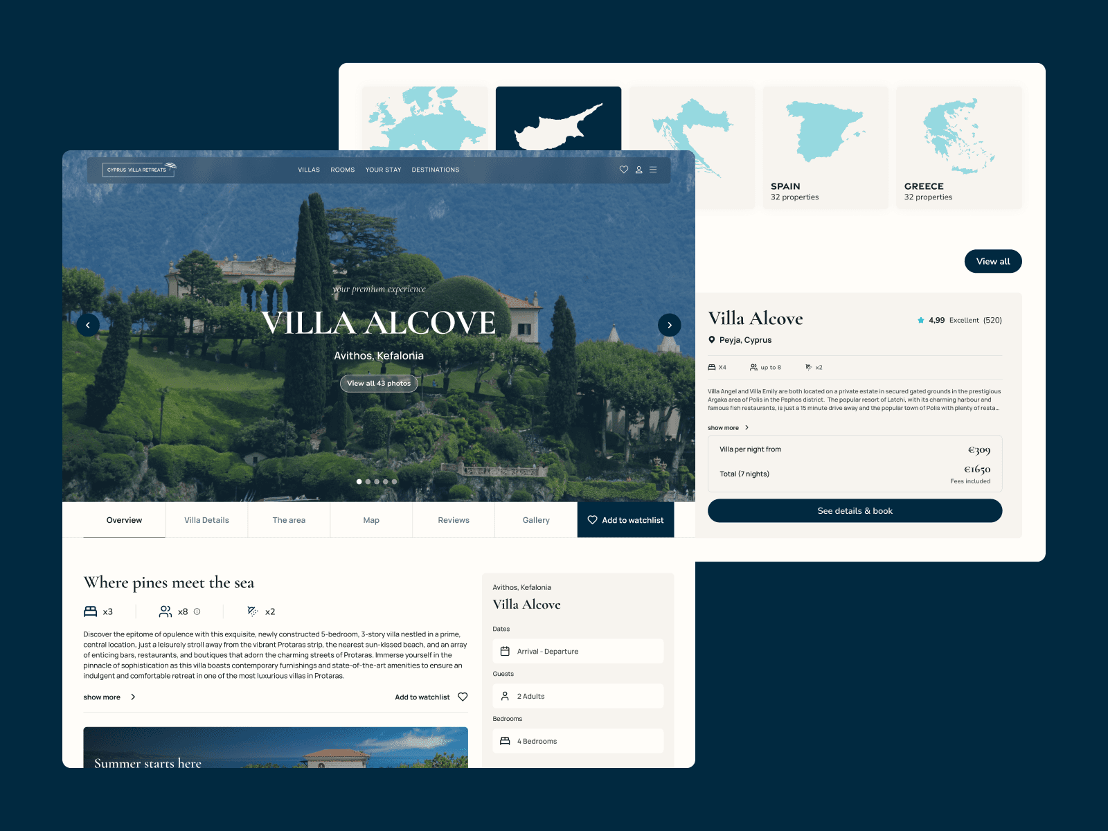 Cyprus Villa Retreats is a booking platform focused on luxury villas, designed for travelers searching for a refined and seamless getaway experience. When the team approached us, the product already existed in an MVP format and was successfully operating on a regional level. However, the business was entering a new stage — expanding into international markets.