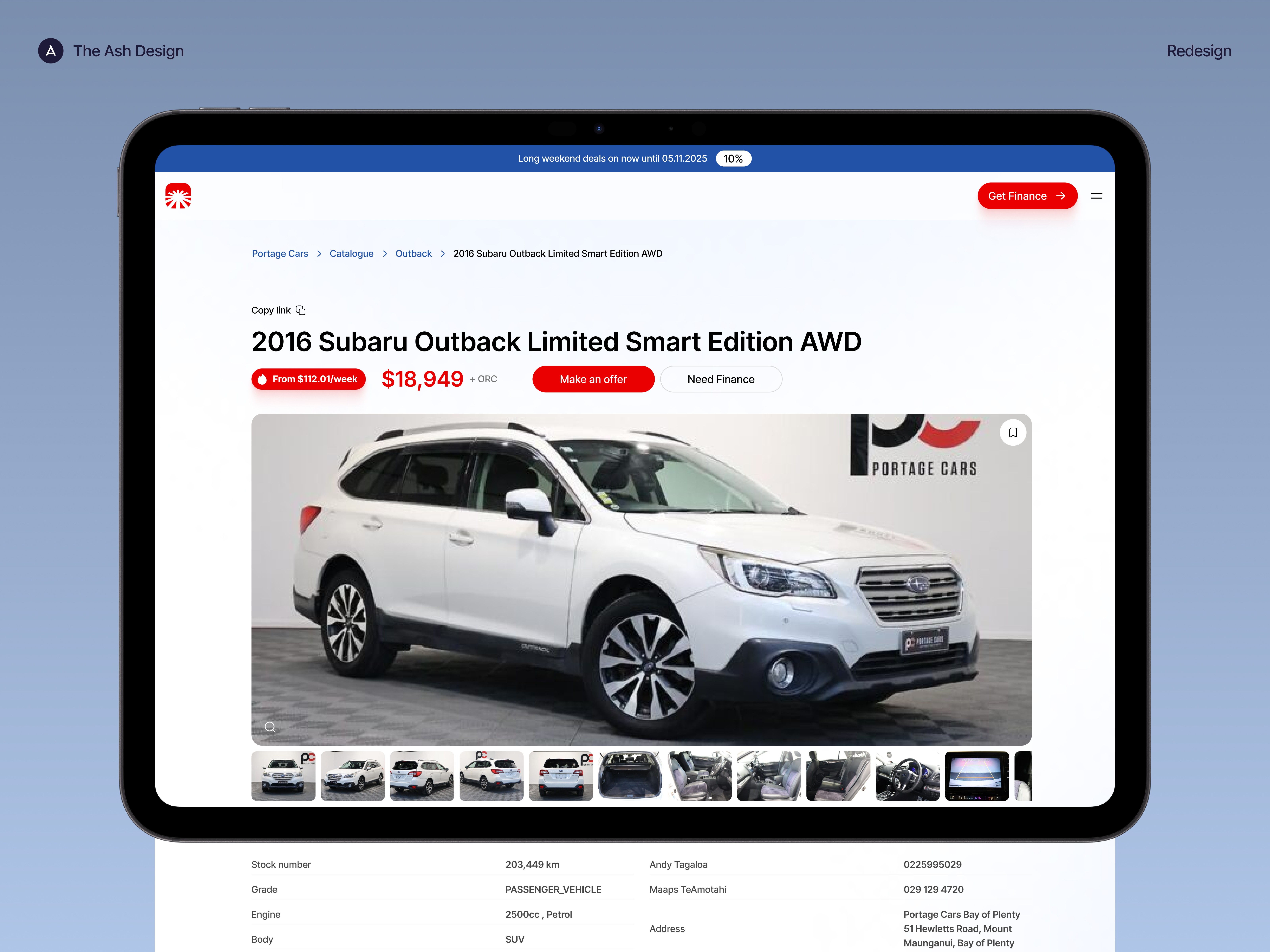 Portage Cars is one of New Zealand’s largest used-car dealerships, with six branches across the country. While the brand had a strong offline presence, its website was not supporting one of its key business goals — generating leads and financing applications.