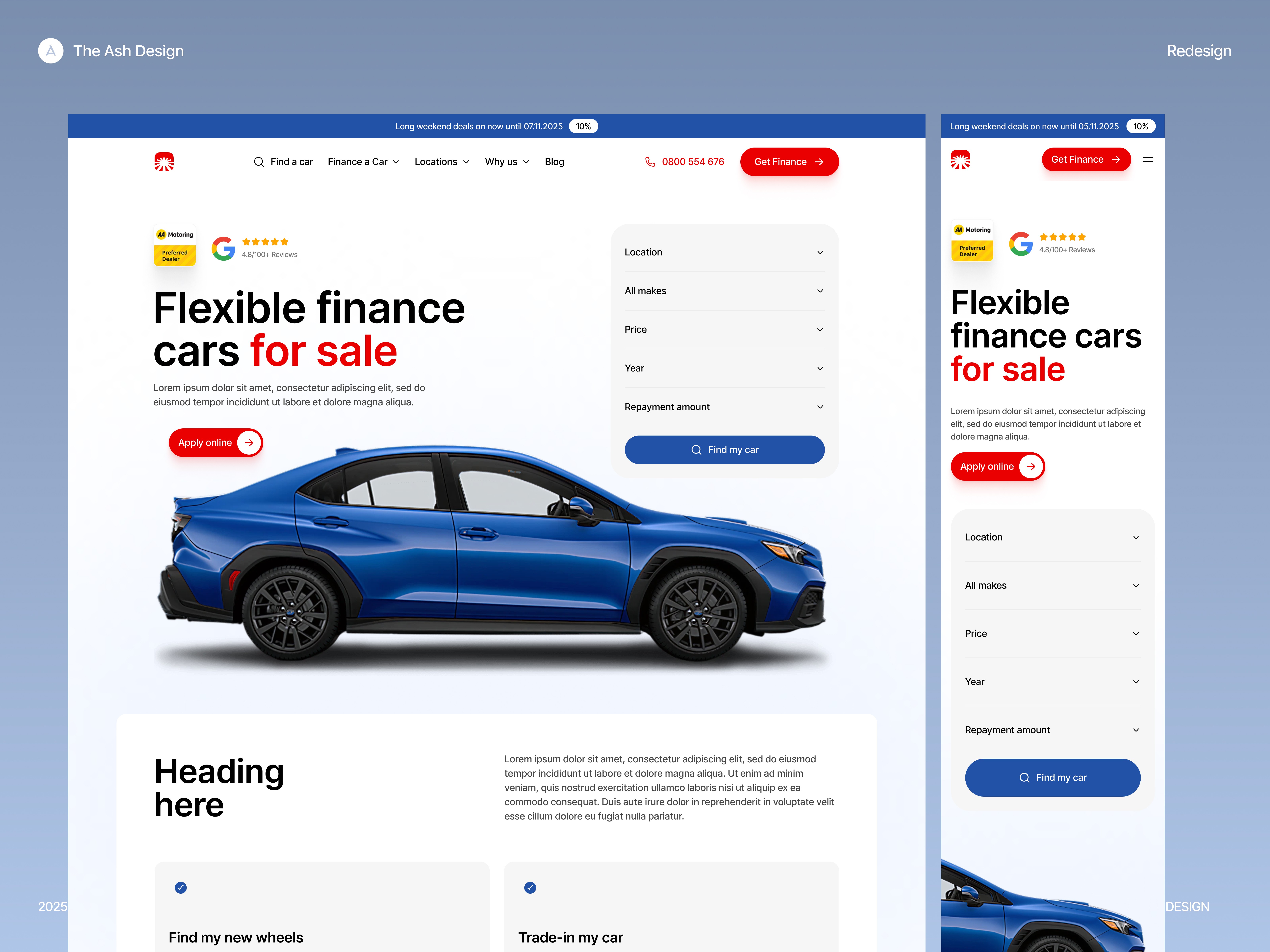 Product presentation was also reworked. Car listings were redesigned to include complete and transparent information, allowing users to quickly compare options and make decisions with confidence. Filters and navigation were simplified to guide users toward key actions without friction. At the same time, the structure was optimized for SEO, ensuring better visibility and long-term performance.